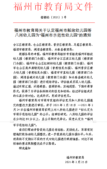 顺利评为“福州市示范性幼儿园”!