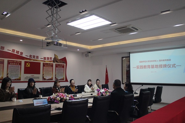 继2019年10月晟禾联建幼儿园成为福建师范大学协和学院实践教育基地后,2021年1月15日上午,福建师范大学协和学院文化产业系学前教育教研室刘晓琛主任、办公室阮晓娟主任及相关人员来到晟禾教育集团总部,再次与晟禾教育集团签订了“共建实践教育基地协议书”,并授予“实践教育基地”牌匾。晟禾教育集团郑炳荣董事长、方柏爱总园长出席了签约、授牌仪式。