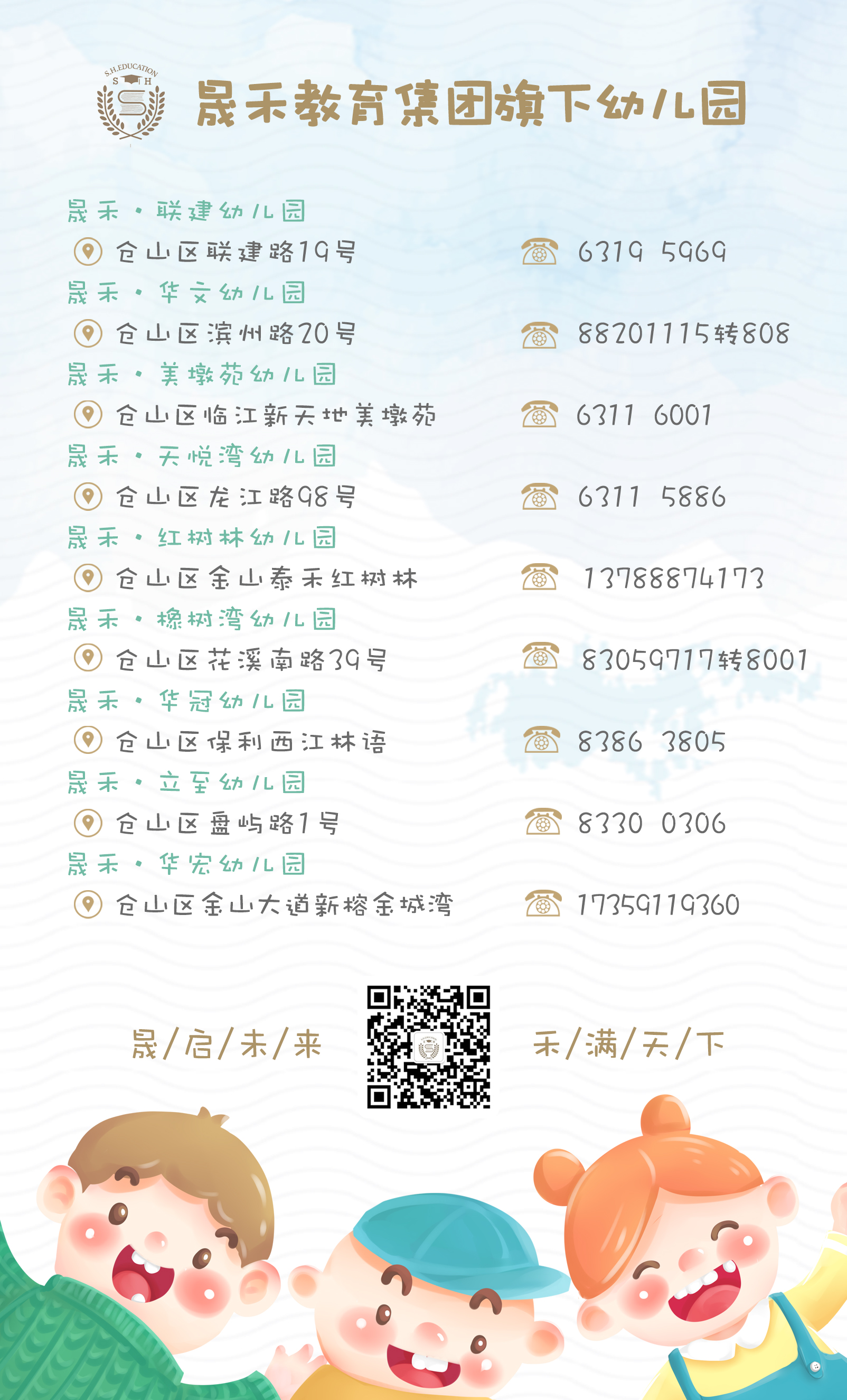 公司旗下联建、华文幼儿园获评福州市市级示范性幼儿园,公司旗下联建、华文幼儿园被评为福州市市级示范性幼儿园,旗下美墩苑、天悦湾、红树林、橡树湾、华冠、立至、华宏幼儿园被评为仓山区区级示范性幼儿园。晟禾联建幼儿园荣获“2016-2018年度区青年文明号”、“福建省诚信先进单位”、“餐饮服务食品安全示范单位”、“福建师范大学协和学院实践教育基地”等荣誉称号;晟禾美墩苑幼儿园被纳入南江滨党建示范带“两新组织”,打造党建示范单位,并被授予福州市“五一先锋号”的荣誉称号。晟禾联建幼儿园、晟禾华文幼儿园、晟禾美墩苑幼儿园、晟禾天悦湾幼儿园、晟禾橡树湾幼儿园、晟禾红树林幼儿园获评5A平安校园。