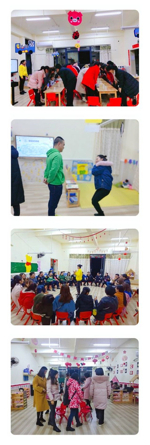 活动开始前,为了让各位家长能够快速熟悉彼此,各班级教师都组织了不同形式的“破冰活动”。通过各式各样的小游戏,拉近了家长与老师之间的距离,也拉近了家长与家长之间的距离,让家长们在游戏中重温了孩提时代的欢乐时光!