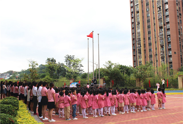 随着国歌的奏响,孩子们在老师的带领下,向国旗行注目礼。雄壮的国歌、鲜艳的五星红旗,神圣庄严的氛围感染着在场的每一个人,而这场神圣的升旗仪式也在大家的心中留下了深刻的记忆。