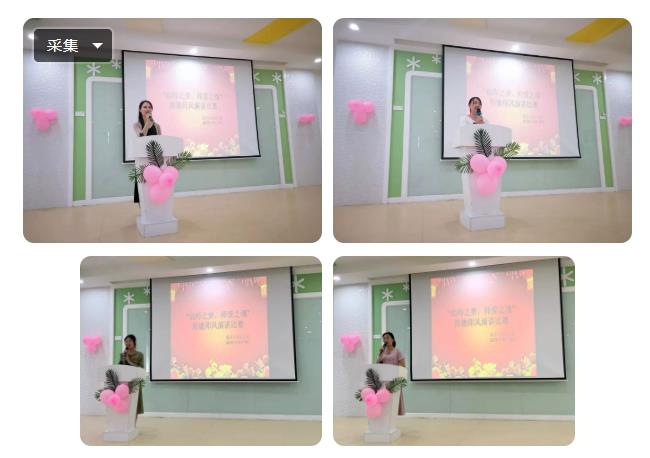 为了进一步加强师德师风建设,提高教师职业道德水平, 也为了增强全园教师的集体凝聚力,继续发扬团结互助的优良园风。宣扬在平凡的岗位上以一颗赏识的心去对待身边的每一个人的优良品格,晟禾教育集团旗下幼儿园分别开展了师德师风建设主题演讲活动