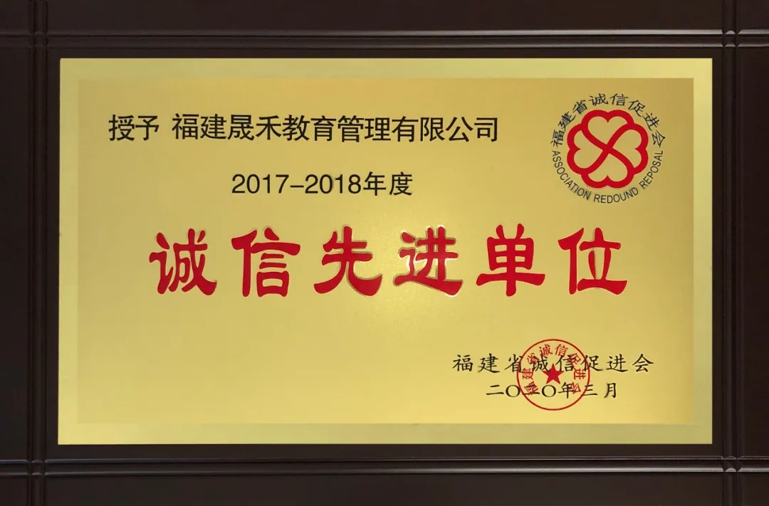 诚信为本丨晟禾教育、郑炳荣董事长分获“诚信先进单位”、“诚信工作先进个人”称号