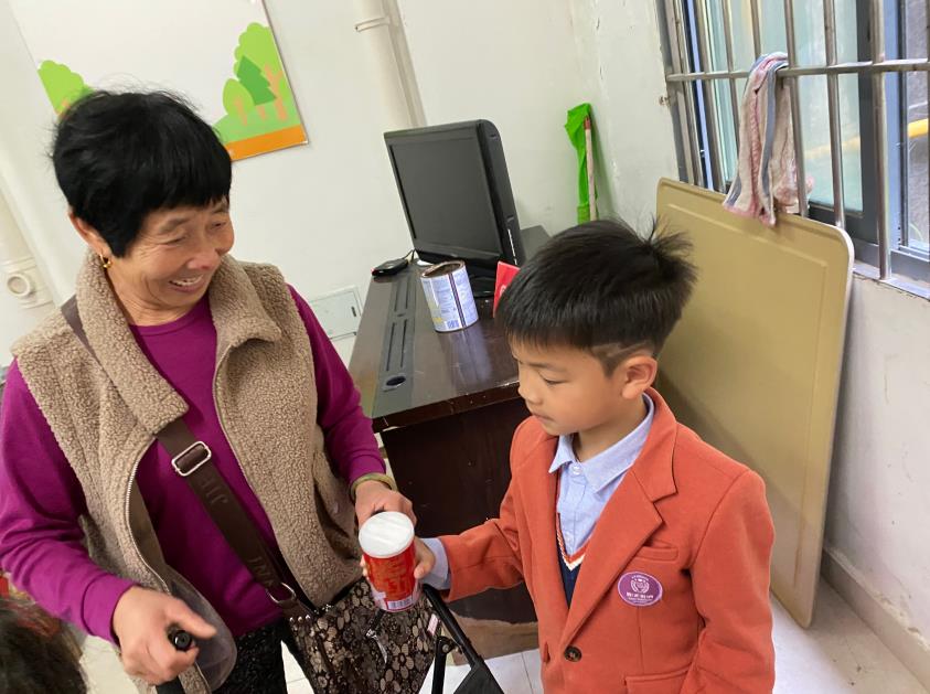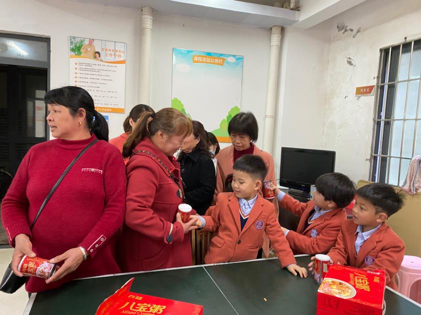 孩子们将一罐罐象征平安、健康的拗九粥献给社区的爷爷奶奶们,并向他们致以节日问候,让老人们感受浓浓拗九节日氛围。
