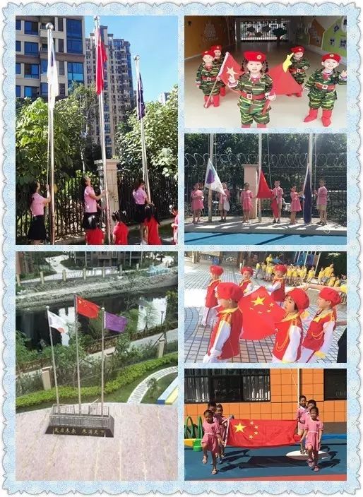 晟禾教育旗下晟禾联建幼儿园、晟禾华文幼儿园、晟禾天悦湾幼儿园、晟禾美墩苑幼儿园都开展了升旗仪式。护旗手们迈着整齐的步伐朝升旗台走来,随着雄壮的国歌奏起,红红的五星红旗冉冉升起,飘扬在蓝天上。