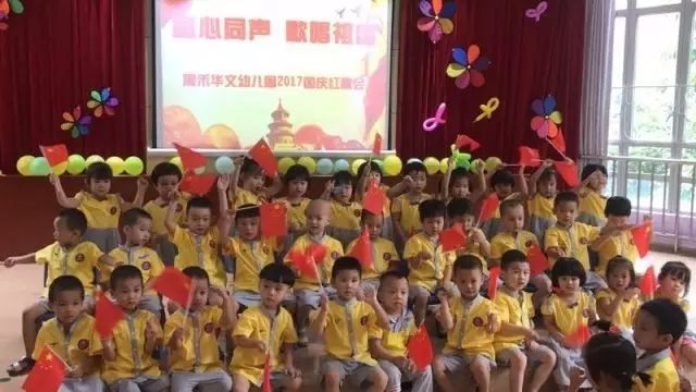晟禾华文幼儿园组织全园师生共同参与“童心同声 歌唱祖国” 红歌会活动。《国旗国旗真美丽》、《哇哈哈》、《祖国祖国我们爱你》、《红心闪闪》、《我爱北京天安门》……一首首脍炙人口的红色经典歌曲在幼儿园里唱响。孩子们用嘹亮动听的歌声重温了红色历史,弘扬了红色精神,一字字、一句句,唱出了对党、对祖国最真挚的情感。