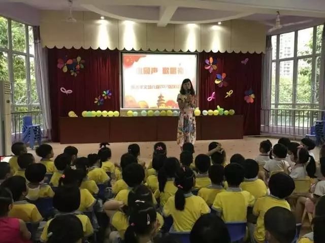 老师们给孩子们讲解了国旗的组成及其含义,红歌会活动上孩子们用嘹亮的歌声表达最祖国妈妈的热爱。