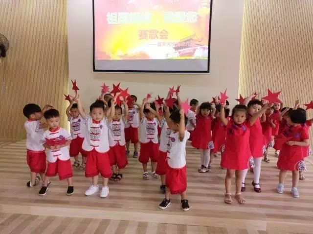 晟禾天悦湾幼儿园在国庆节前夕举行了“迎国庆唱红歌”活动。 孩子们用动听的童音,动听的红歌,唱出了今天的幸福,唱出了明天的希望和对生活的无限热爱。