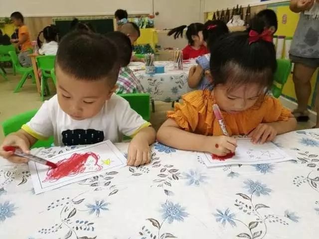 除了唱歌,宝贝们还以绘画的形式为祖国妈妈庆祝生日,小画家们充分发挥自己的想象力,挥动手中的画笔,大胆构思,把自己心目中对祖国妈妈的热爱用画笔描绘出来,一幅幅充满童趣、充满幻想、充满活力的作品,呈现在大家的眼前。为此次国庆节活动增添了别样的风采。