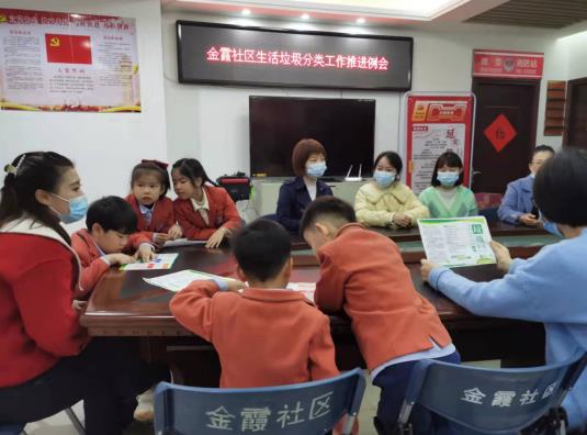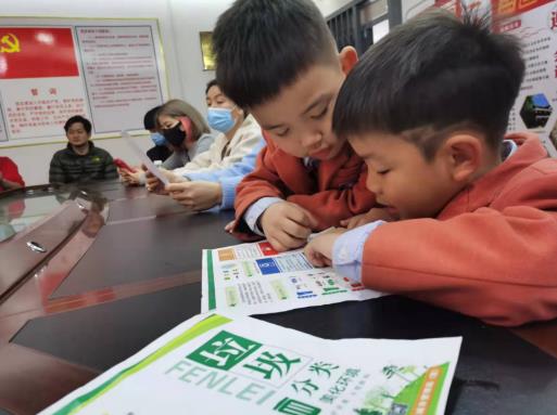 为提高大家的垃圾分类意识,在活动现场,金霞社区新时代文明实践站的工作人员垃圾分类志愿者向我们的党员教师、家长代表和孩子们发放了垃圾分类知识宣传材料、环保宣传折页等,讲解垃圾分类的方法。