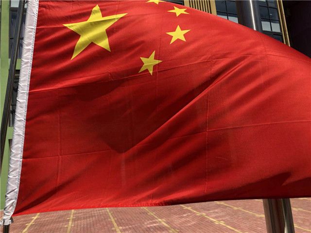 紧接着,孩子们激动地看到了迈着整齐步伐的小小升旗手和护旗手们举着国旗来到了大家面前。在庄严的国歌声中,鲜艳的五星红旗伴随着国歌缓缓升起,大家凝视着五星红旗冉冉升起,迎着灿烂的阳光,五星国旗迎风飘扬。各班的孩子们在老师的带领下唱起了国歌,大家都以最庄严的方式表达着自己对祖国的热爱之情。