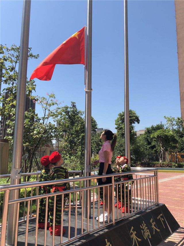 一大早,全校师生都已排着整齐的队伍等待着,随着主持人老师声音响起,晟禾联建幼儿园的升旗仪式正式拉开了帷幕。为了让孩子们更深入地了解五星红旗上5颗星所代表的含义,老师还为孩子们讲解了国旗的含义以及升国旗的礼仪。