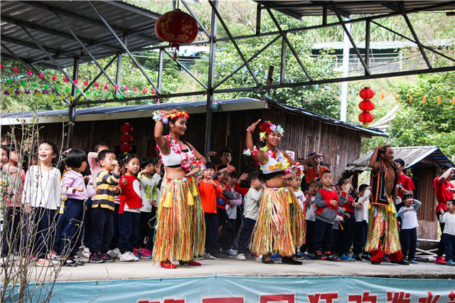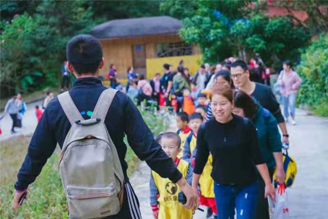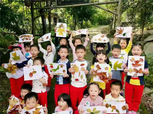 水谷瑶民俗景区位于距福州市区50公里的闽侯县白沙镇,山清水秀,房屋建筑就地取材以毛竹建筑为特色,山寨中云集了傣、佤、壮、苗、哈尼、布依等多个少数民族,不同的风土人情有着别具特色的民俗演艺!进入悠幽谷,小朋友们便迫不及待地前往赏龙潭瀑布欣赏美景,沿途,为了发展幼儿的观察力、想象力及审美能力,老师给小朋友们布置一个特别的任务:收集秋天的落叶,进行DIY设计。