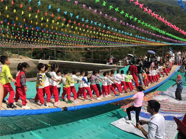 要说今年秋游有什么特色的亲子活动,那就不得不提网红桥啦!不仅能增进亲子关系,还能锻炼小朋友们的胆量与平衡能力哦~