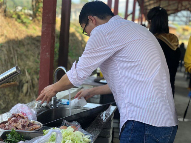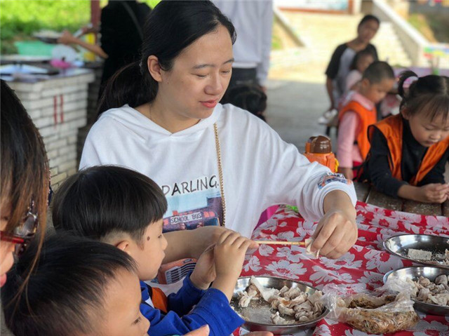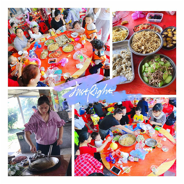 在小朋友们玩耍结束,休息的时候,勤劳能干的爸爸妈妈们已经开始为大家准备丰盛的午餐啦!作为同样勤劳能干的宝宝,小朋友们当然不能错过这个可以“大展身手”的好机会啦!“妈妈、妈妈,我来帮你~~”